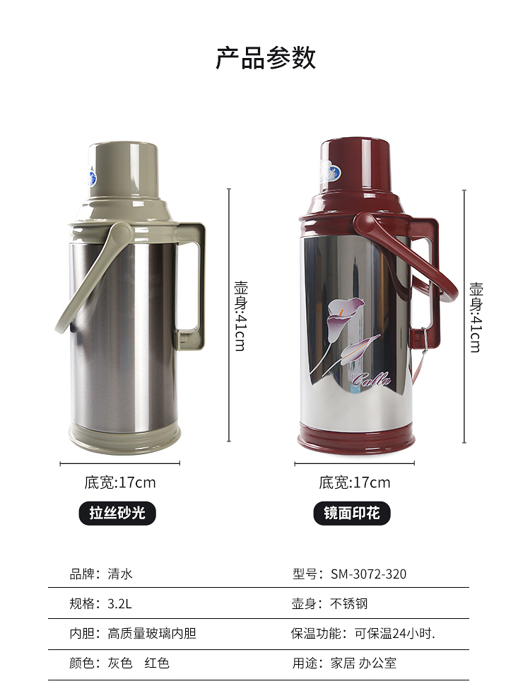 >上海清水正品8磅热水瓶保温暖壶SM-3072-3.2L超大容量保温持久