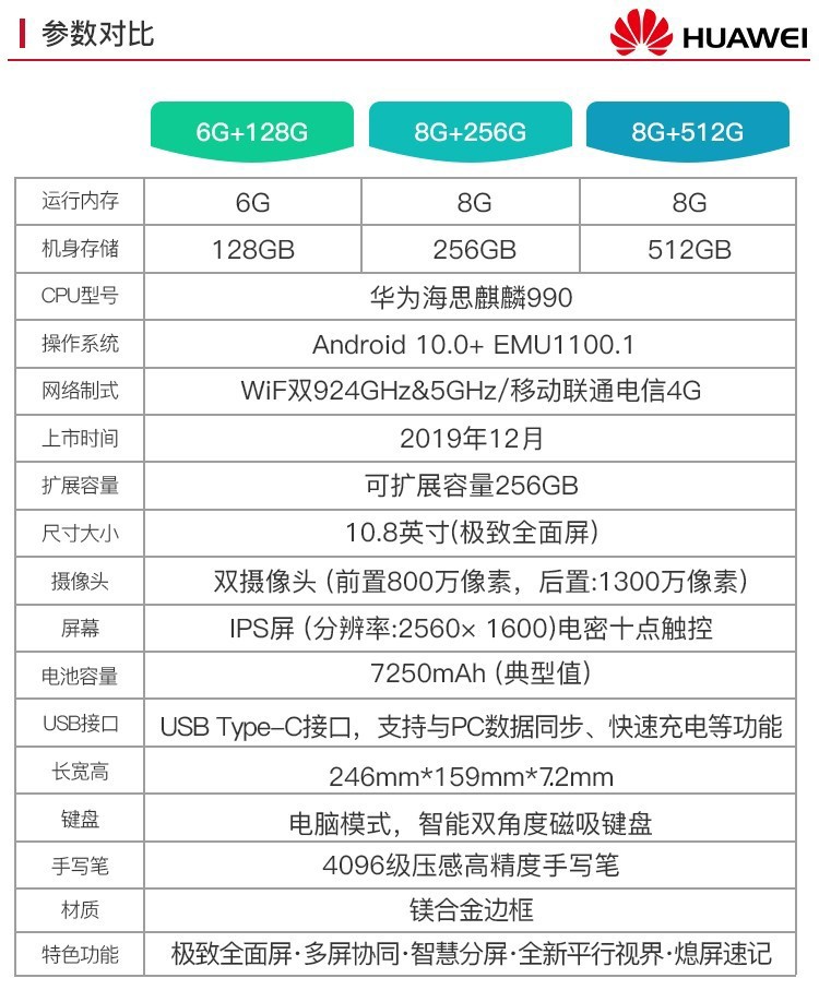 >华为平板Matepad Pro 10.8 8G+256G 安卓全面屏二合一平板电脑