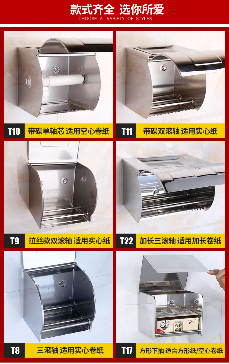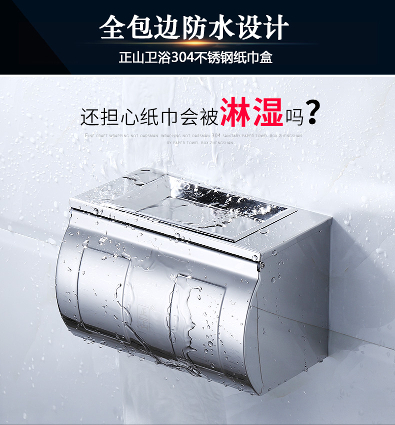 >卫生间防水家用洗手间纸巾盒架304不锈钢