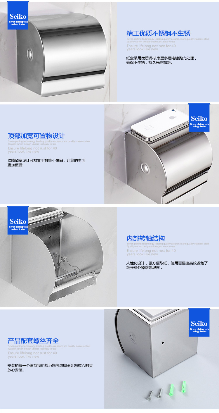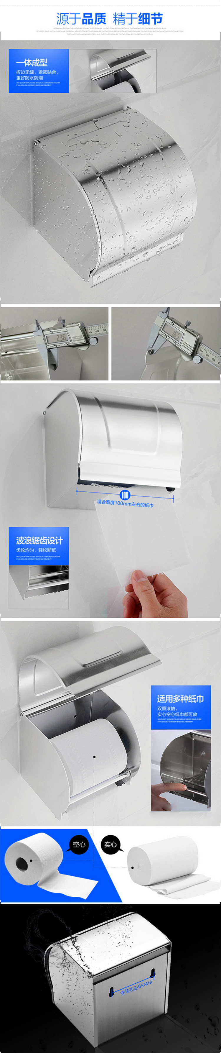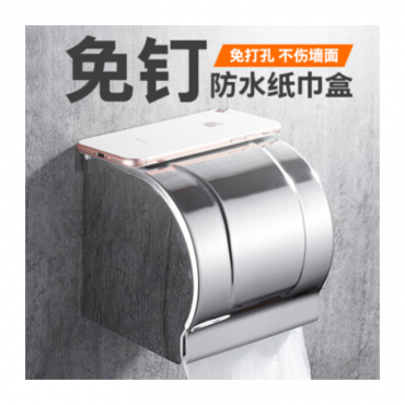 >纸巾盒免打孔卫生间卷纸盒厕所手纸盒封闭不锈钢纸巾架