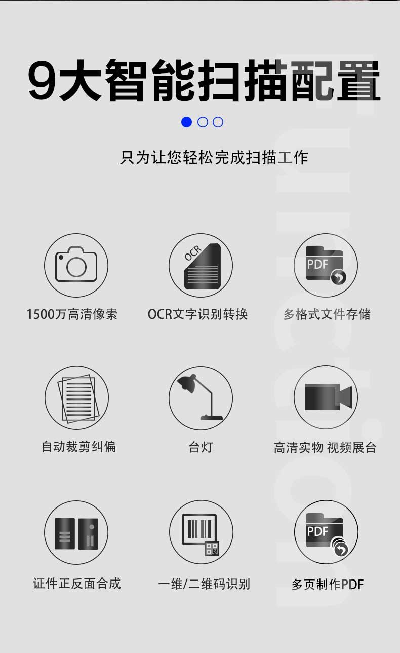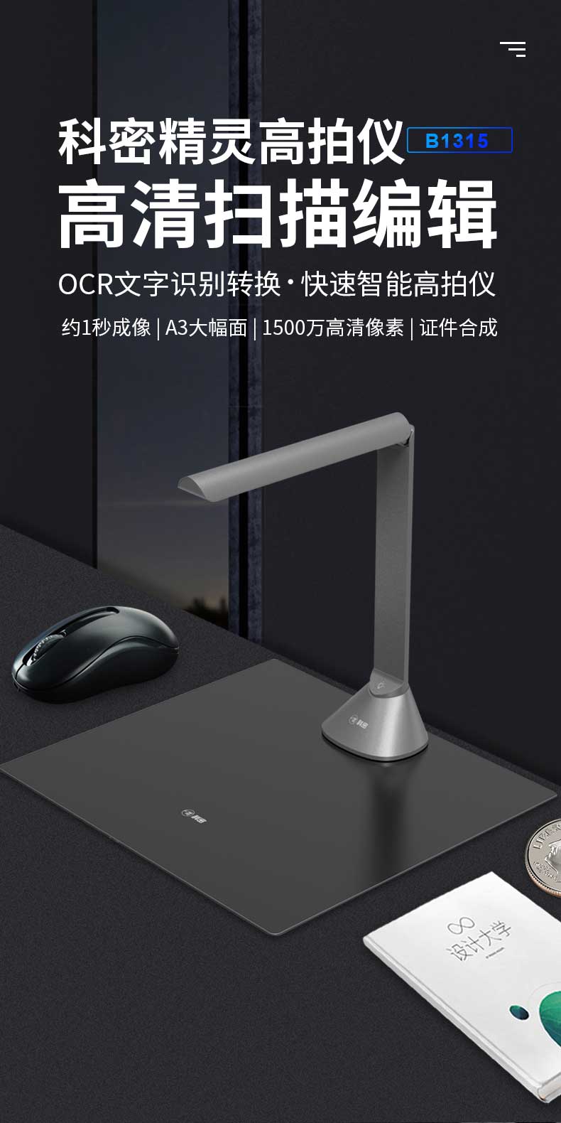 科密 B1315 高拍仪 1500万高清像素 自动对焦A3软底 文件资料合同快扫 OCR精准识别 扫描仪