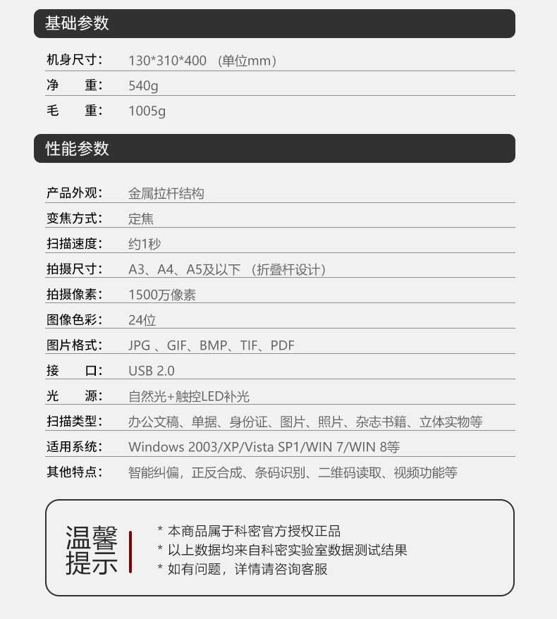科密 D4318 高拍仪 1300万+500万高清像素 A3硬底 身份证识别模组阅读器 文件快扫