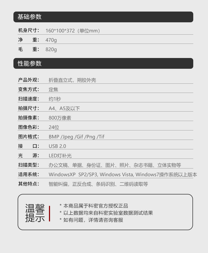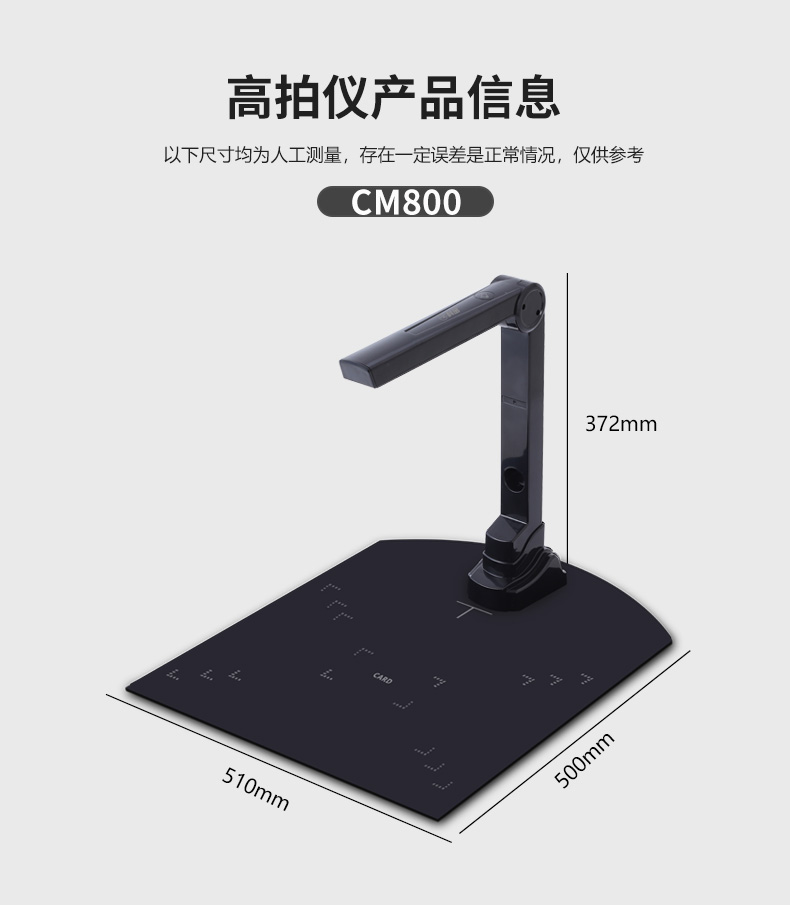 >科密 CM800 高拍仪 800万像素扫描仪 A4幅面OCR文字识别办公文档资料照片存档编辑优化(黑)