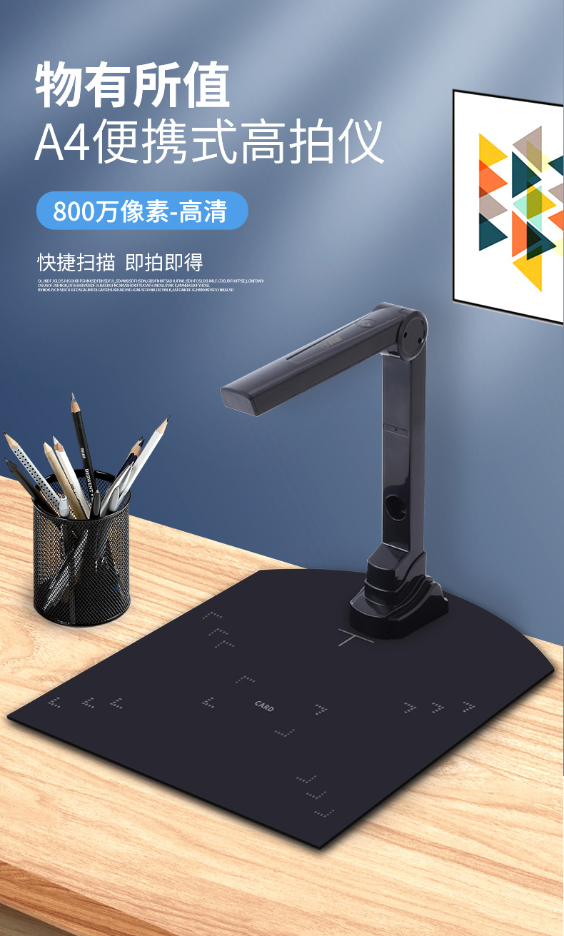 科密 CM800 高拍仪 800万像素扫描仪 A4幅面OCR文字识别办公文档资料照片存档编辑优化(黑)