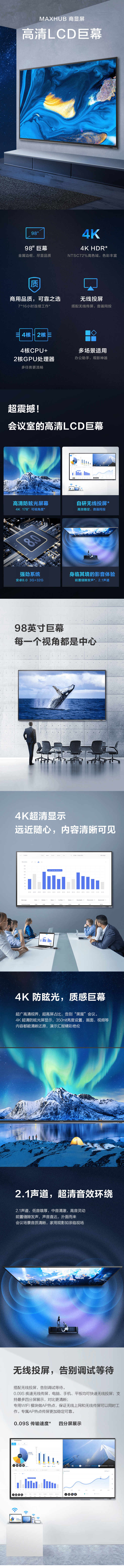 >MAXHUB 视频会议终端 电子标牌广告机98寸W98PNA 4核CPU+ 2核GPU处理器