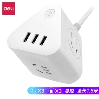 >得力(deli)18321多功能插座 三角魔方 智能USB插座 插排/插线板/接线板/排插 3USB接口+3组合孔 总控 全长1.5米