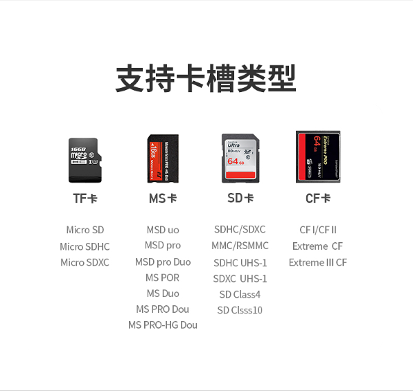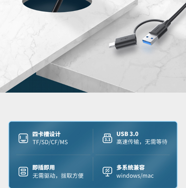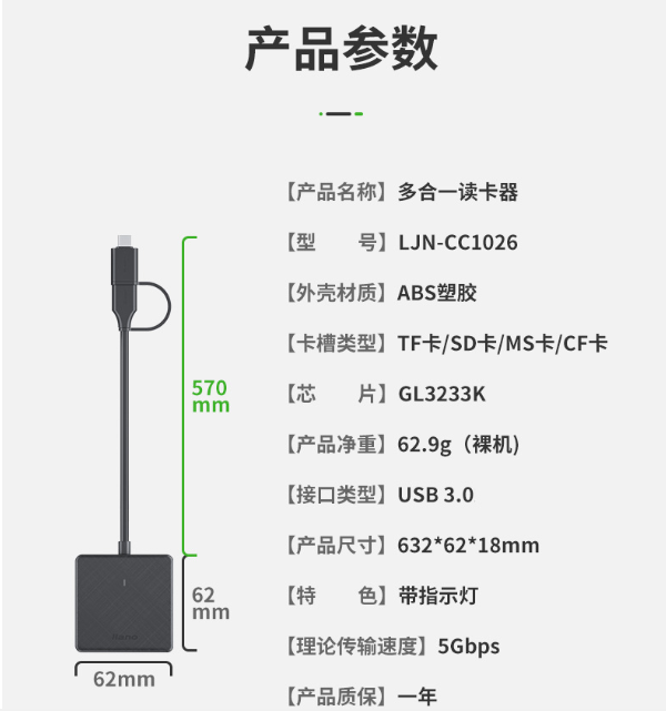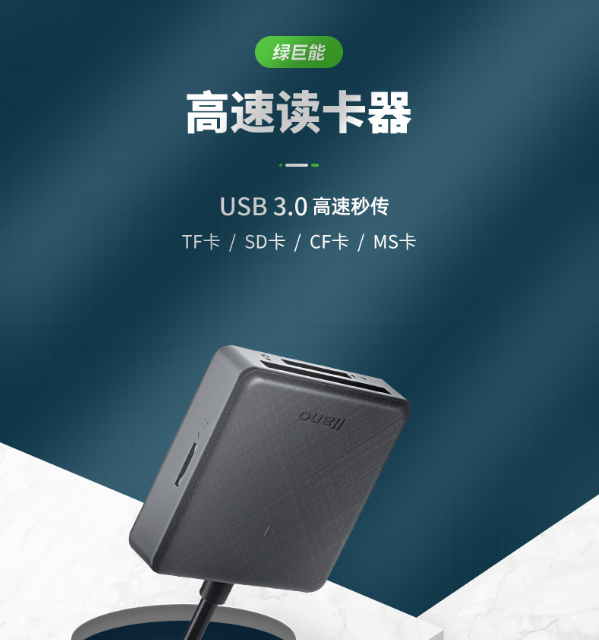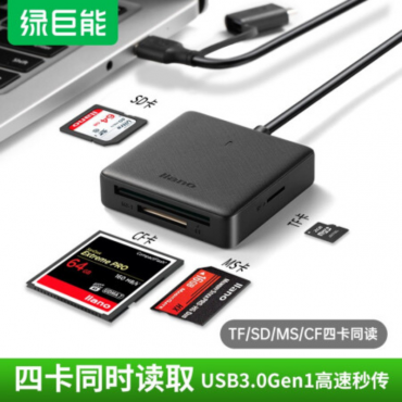 绿巨能(llano)LJN-CC1026 USB3.0高速读卡器 多功能读卡器 支持SD/TF/CF/存储卡等自带转接头 黑色