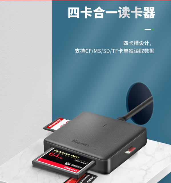 >绿巨能(llano)LJN-CC1026 USB3.0高速读卡器 多功能读卡器 支持SD/TF/CF/存储卡等自带转接头 黑色