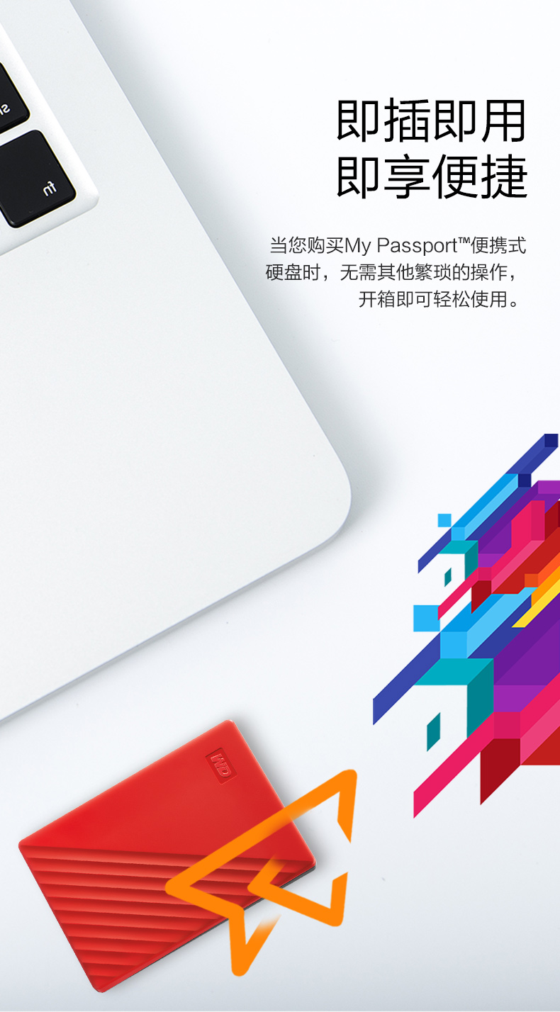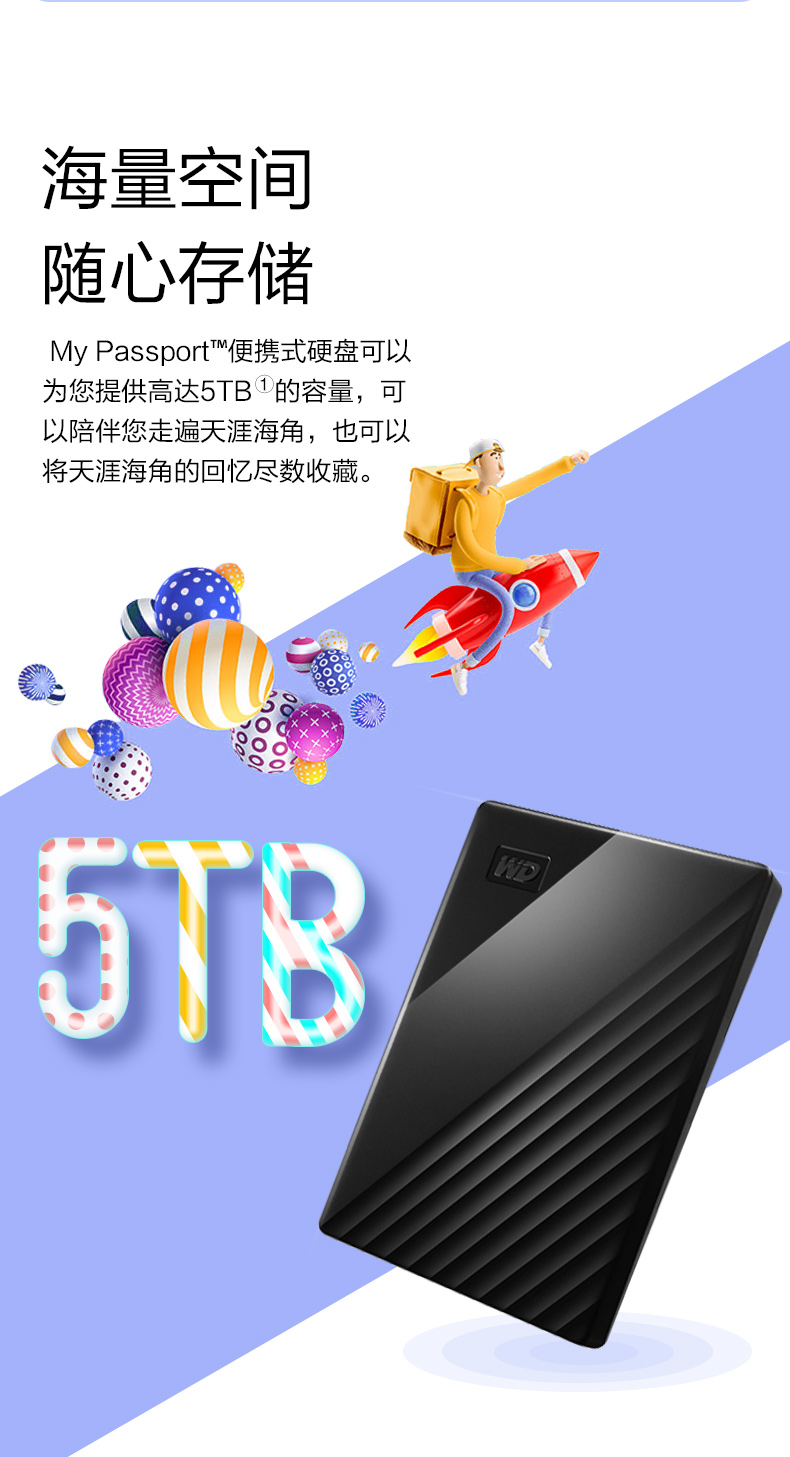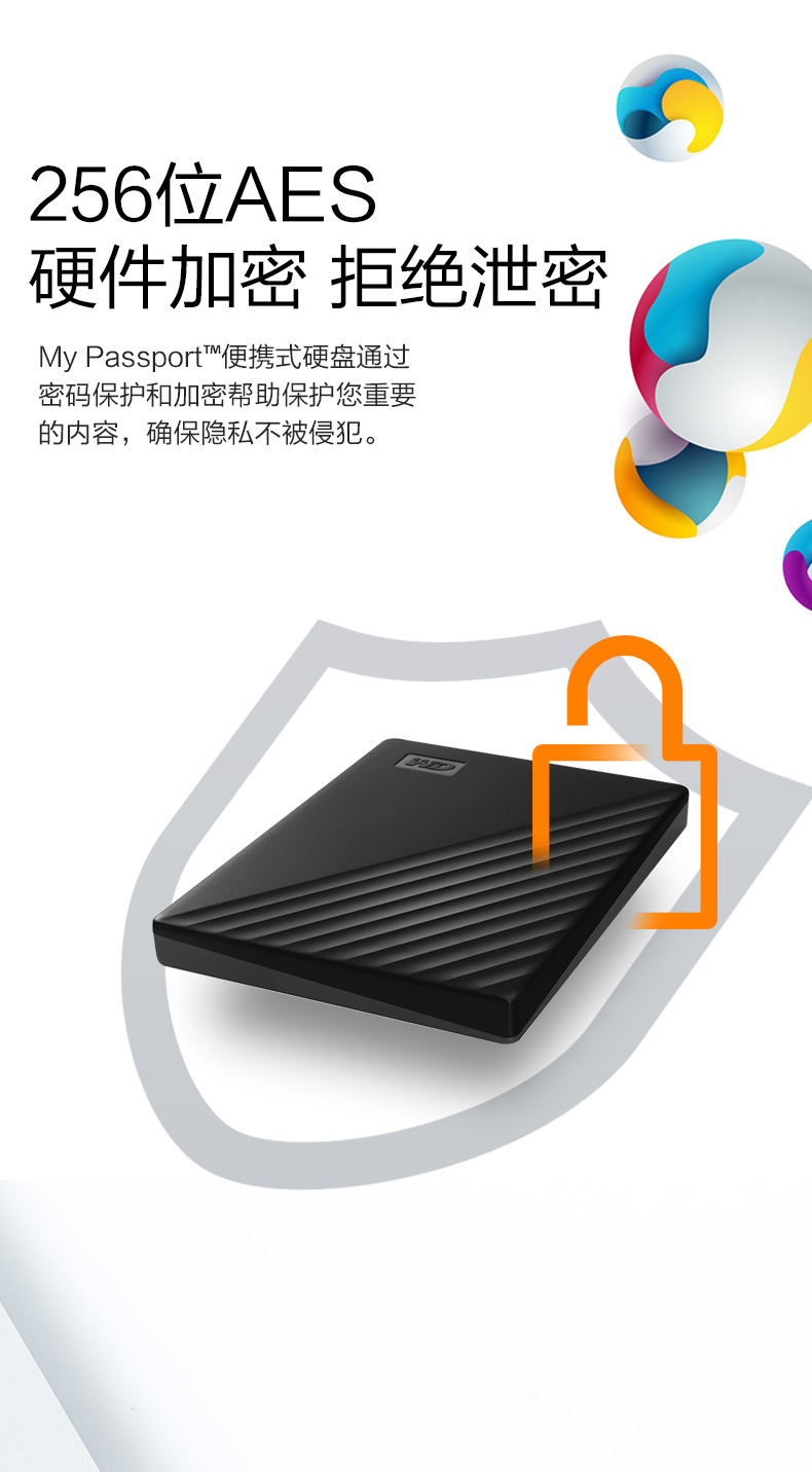 >西部数据(WD) 4TB USB3.0 移动硬盘 My Passport随行版 2.5英寸 黑色 高速 便携 加密 自动备份 兼容Mac