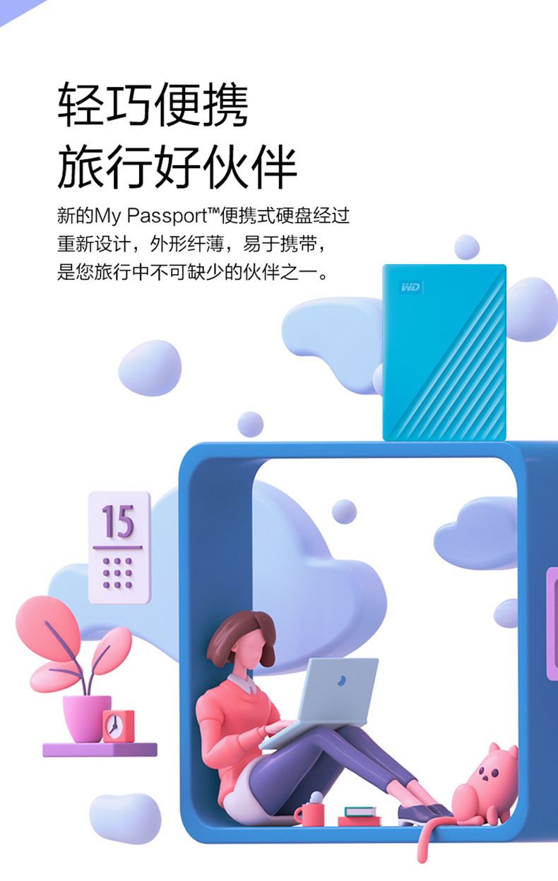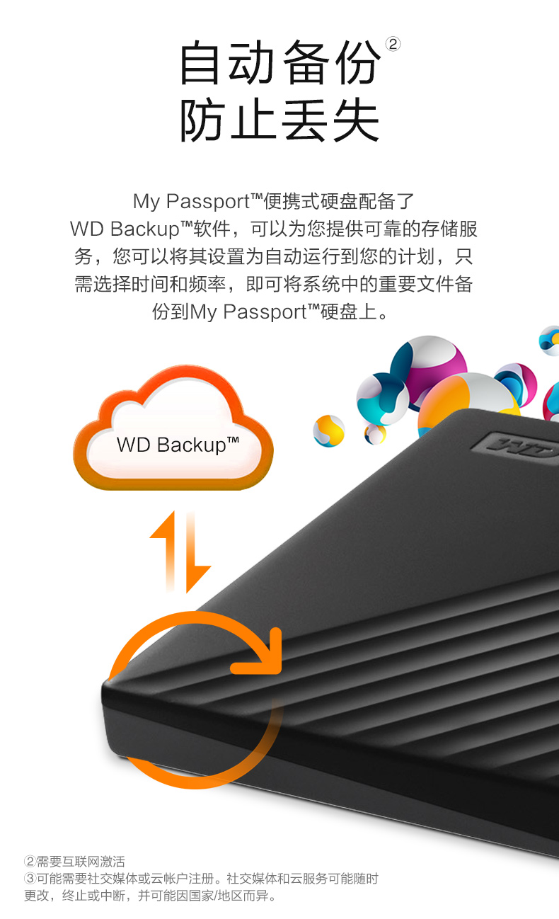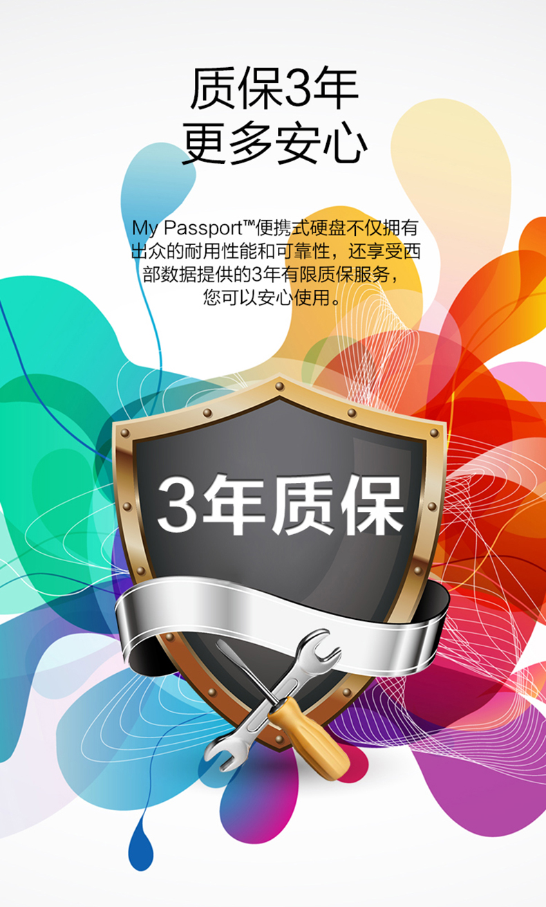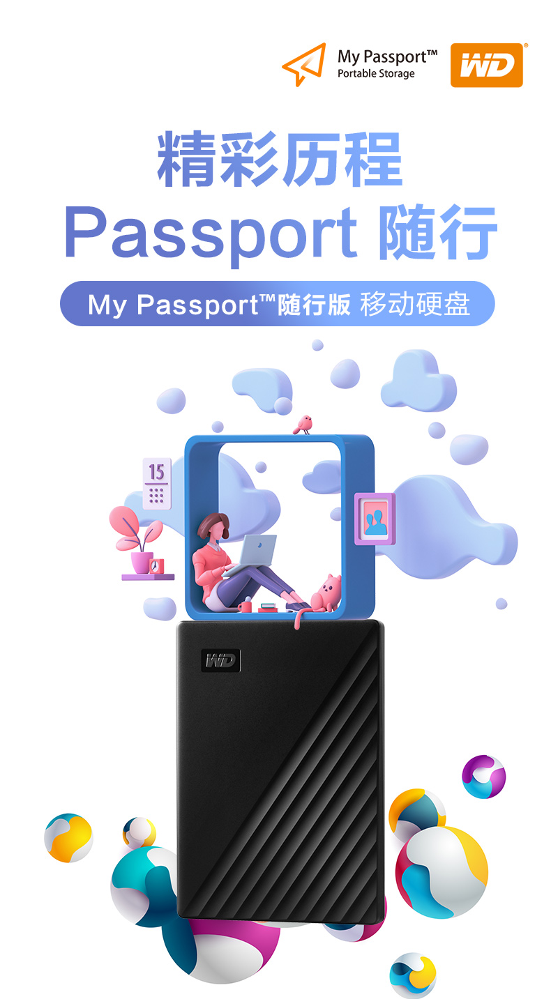 >西部数据(WD) 4TB USB3.0 移动硬盘 My Passport随行版 2.5英寸 黑色 高速 便携 加密 自动备份 兼容Mac