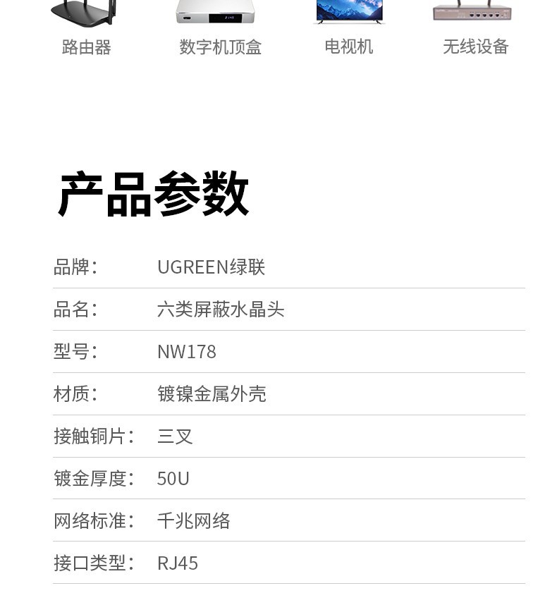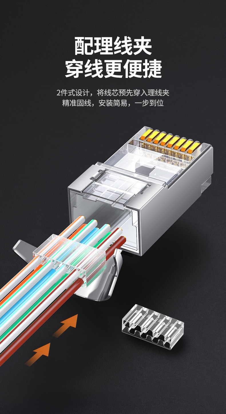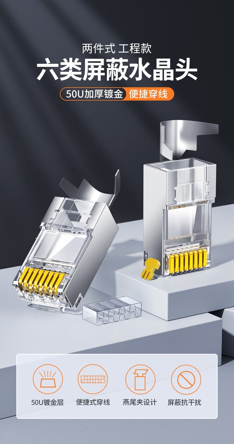 >绿联(UGREEN)六类网线,数据线类 水晶头 6类千兆网络接头 RJ45工程级8P8C电脑网线连接器 Cat6水晶头镀金 100个