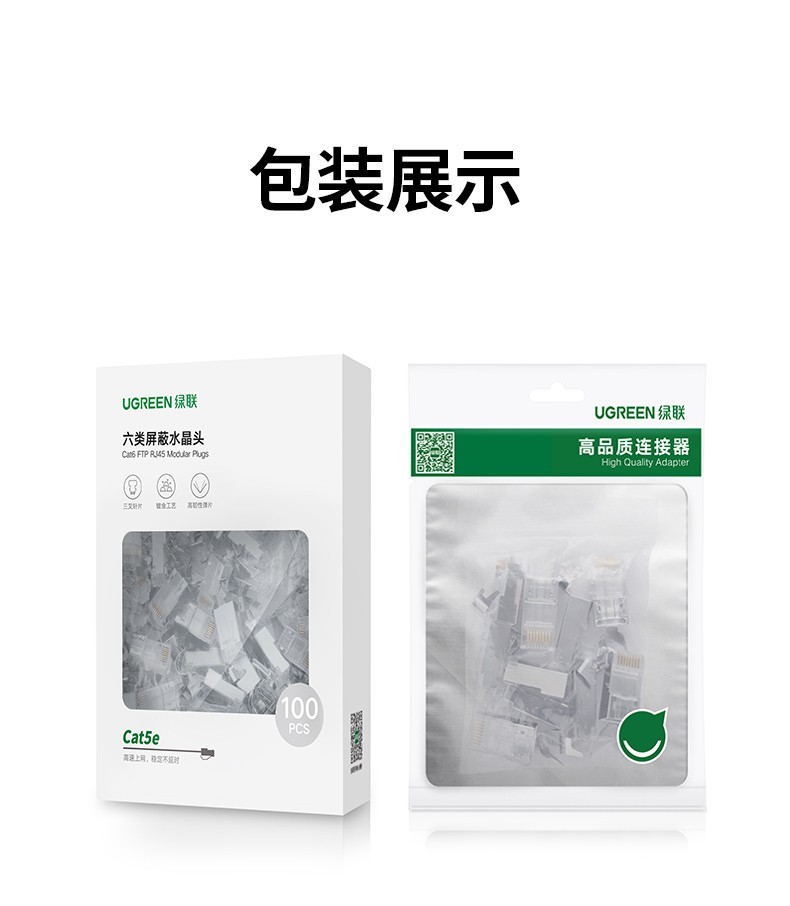 绿联(UGREEN)超五类RJ45网络水晶头 网络水晶头 电脑网线接头 Cat5e水晶头 100个/袋