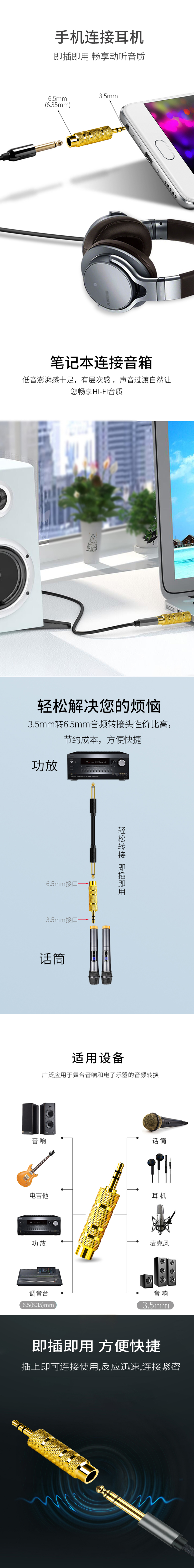 山泽3.5mm公转6.5mm母 S311 数据线类 音频转接头手机笔记本电脑连接音响箱麦克风话筒调音台功放直播演唱会合金