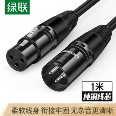 >绿联(UGREEN) 20708 数据线类 卡侬公对母音频延长线 K歌直播麦克风话筒头线 调音台音响箱功放摄影机平衡卡农线1米黑