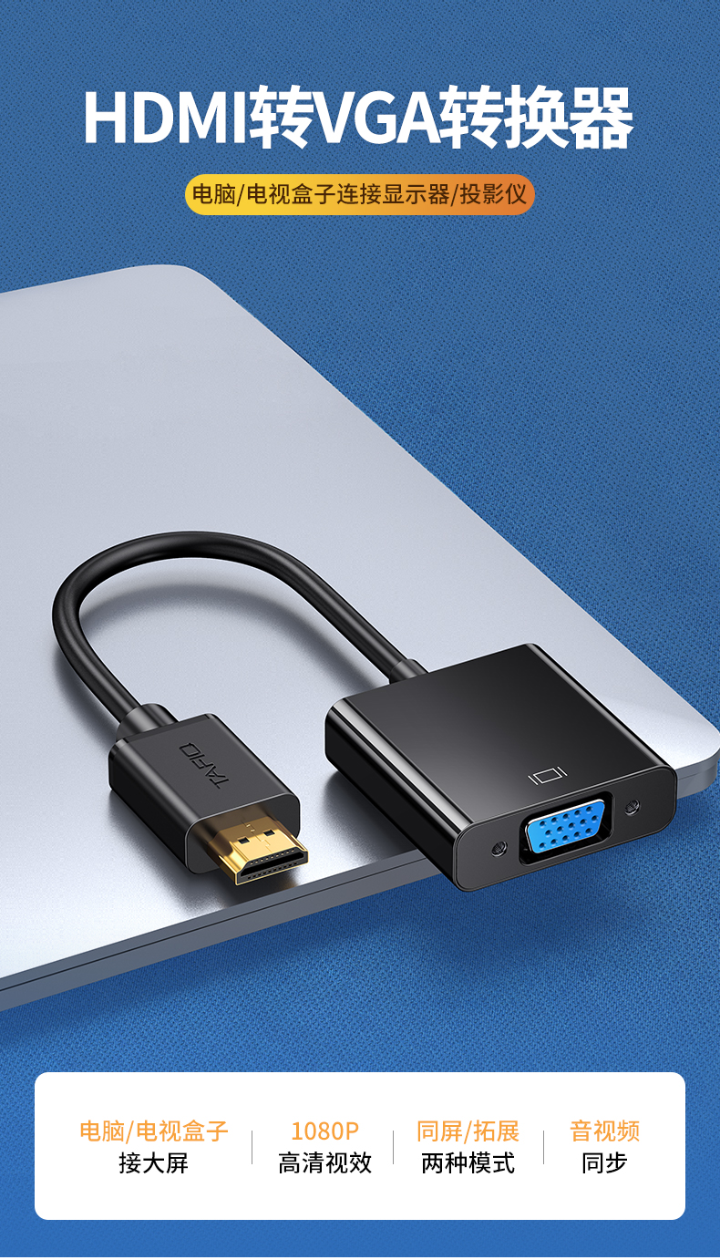 >深蓝大道 zhq-01 数据线类 HDMI转VGA线转换器带音频口 高清视频转接头线适配器