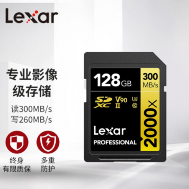 >雷克沙(Lexar)128GB U盘存储类配件 读300MB/s 写260MB/s SDHC UHS-II U3 V90 SD高速存储卡(2000x)