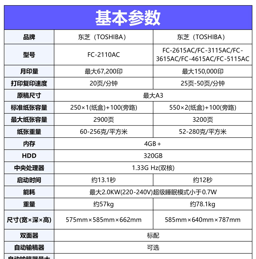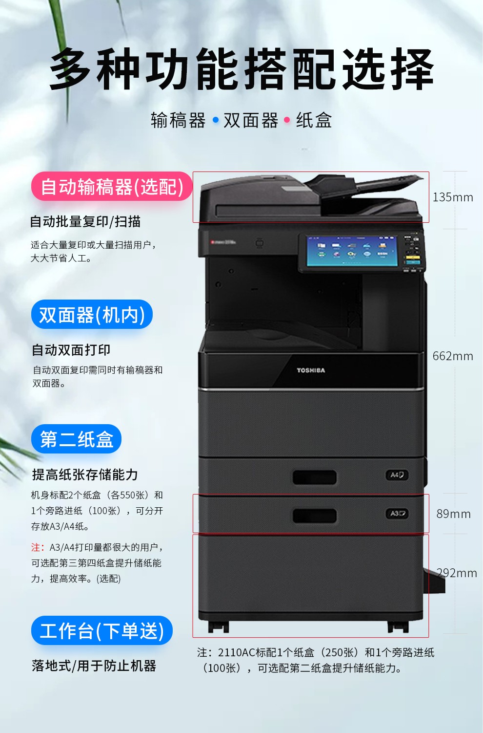东芝(TOSHIBA)FC-3115AC 复印机 彩色A3自动双面网络扫描3015AC升级 +双面输稿器 标配双层纸盒 侧路纸盘