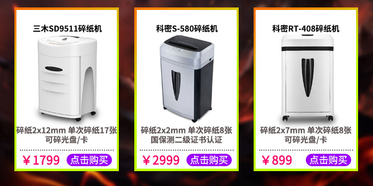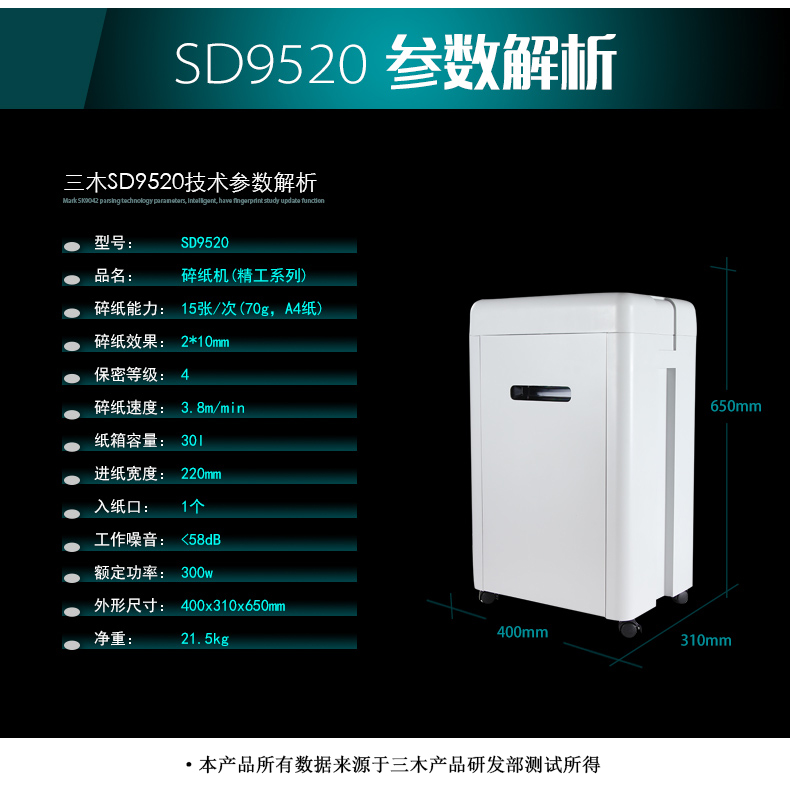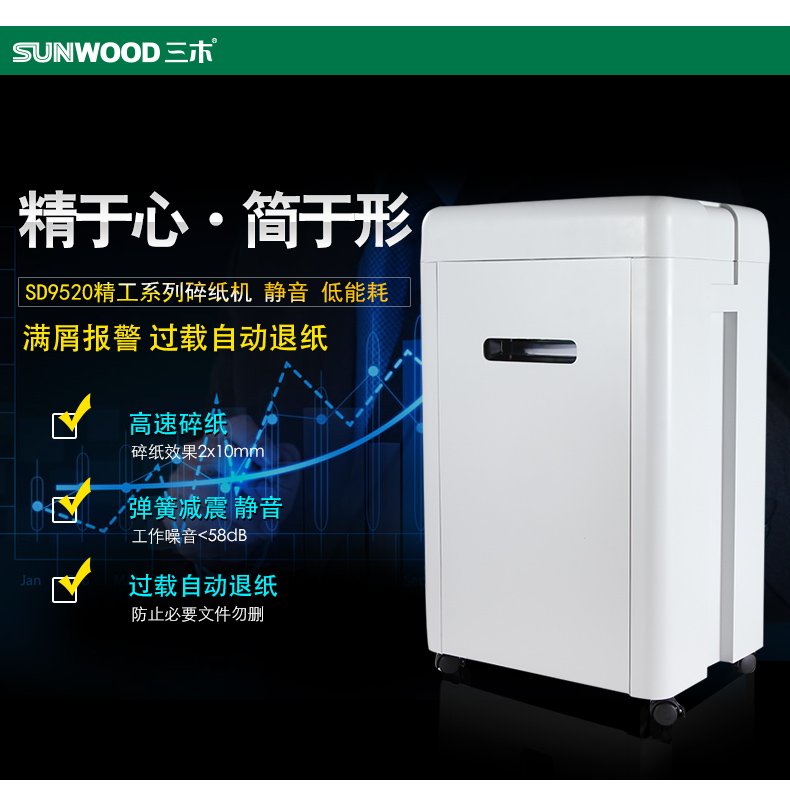 >三木(SUNWOOD)MSD9520 碎纸机 5级保密办公商用(单次17张 持续15分钟 30L 可碎纸光盘卡回形针订书针)
