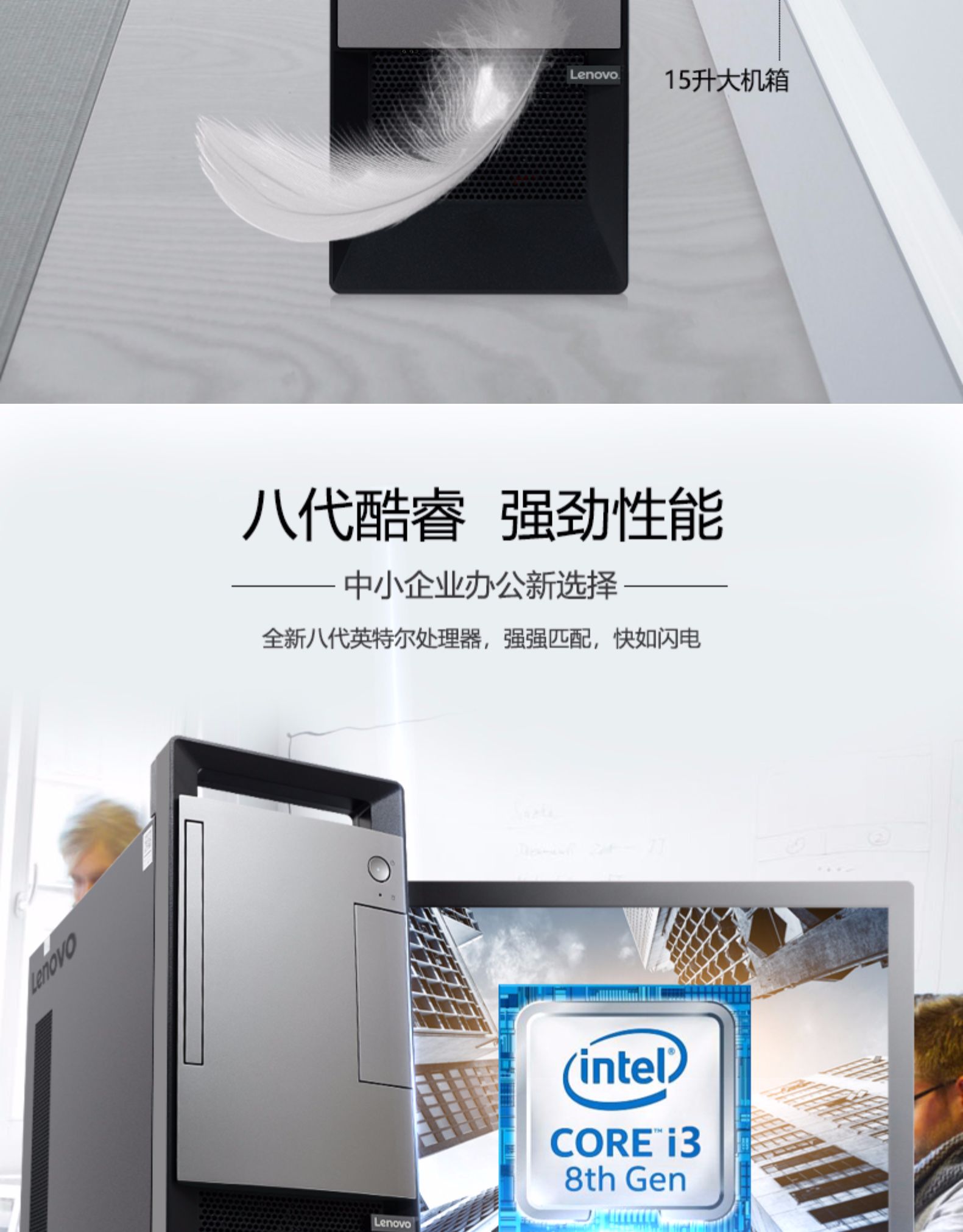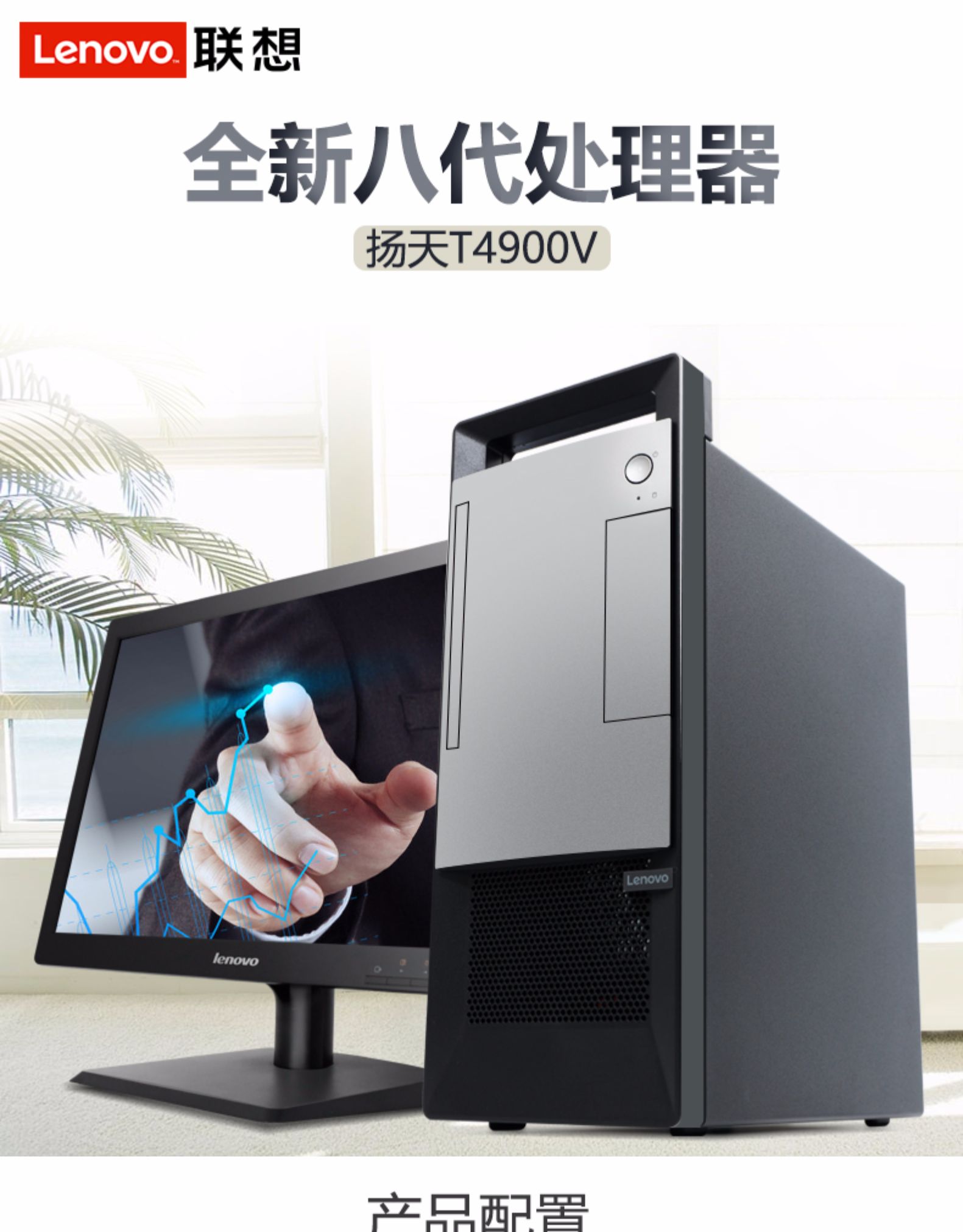 >联想 联想T4900V 台式计算机 (i3-9100 8G+1T+128GSSD(23寸显示器) 集显 无光驱 win10