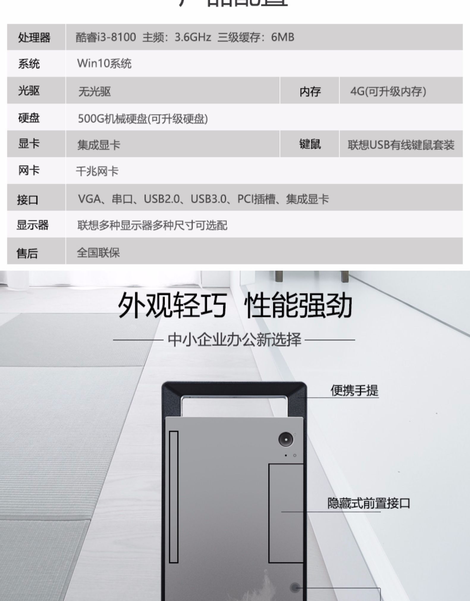 联想 联想M4610d 台式计算机 (i3-9100 8G+1T+SD128(23寸显示器) M4610d 集显 无光驱 win10