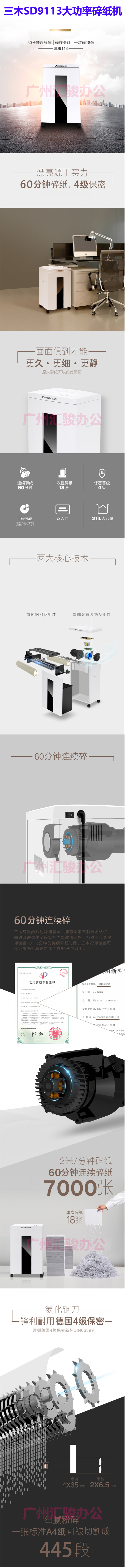 >三木(SUNWOOD) SD9113 4级保密办公商用碎纸机 (单次16张 持续60分钟 21L 可碎卡,光盘,纸,回形针、订书针)