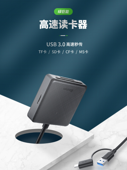 绿巨能(llano)xz-04 USB3.0 U盘/存储类配件 高速读卡器 多功能读卡器 多盘符读卡器 支持SD/TF/CF/存储卡等