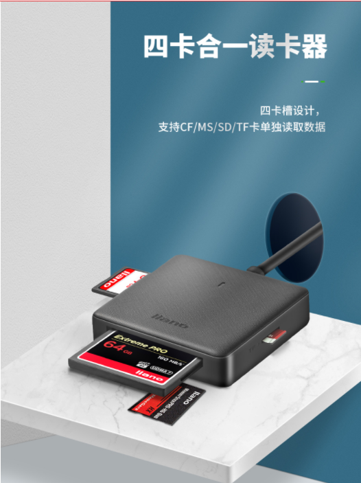 >绿巨能(llano)xz-04 USB3.0 U盘/存储类配件 高速读卡器 多功能读卡器 多盘符读卡器 支持SD/TF/CF/存储卡等