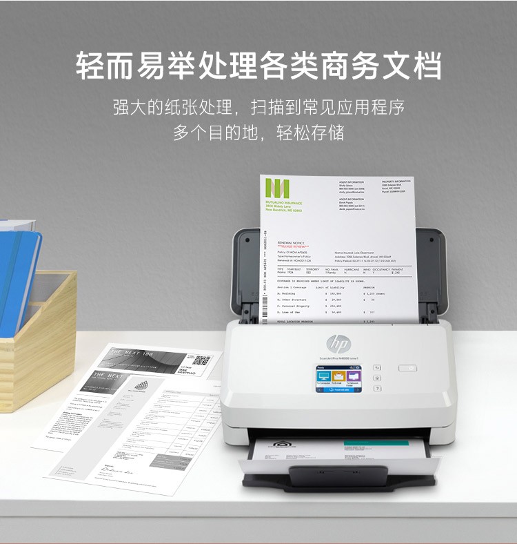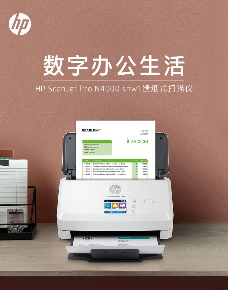 >惠普(HP) N4000snw1 扫描仪 高速无线WIFI有线网络共享批量自动进纸扫入U盘双面高速扫描 N4000snw1(40张/80面每分钟)