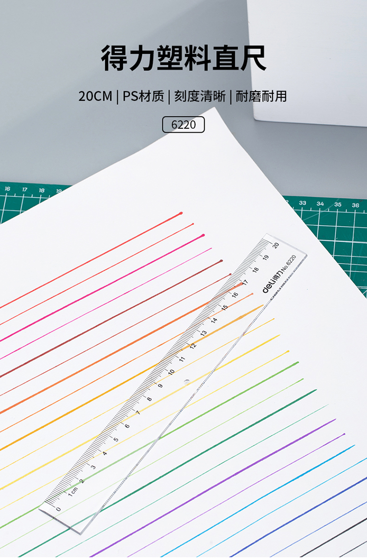 得力(deli) 6220 各种尺 办公通用直尺 测量绘图尺子 办公用品 20cm