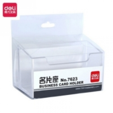 得力(deli) 7623 便签盒/名片索引盒 透明名片座 桌面办公名片收纳盒