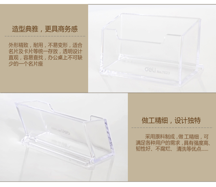>得力(deli) 7623 便签盒/名片索引盒 透明名片座 桌面办公名片收纳盒