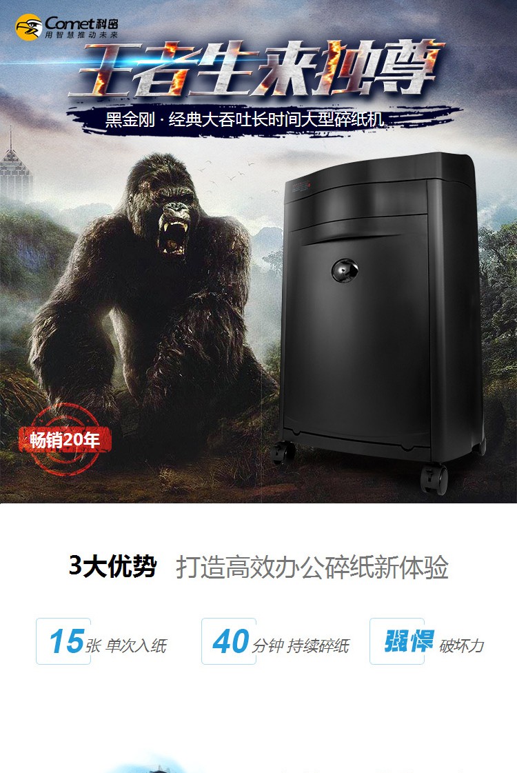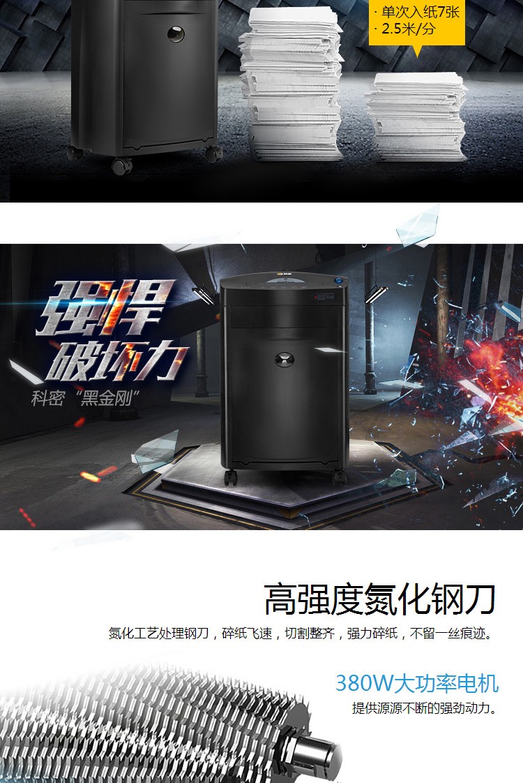 >科密(Comet)HJG001 碎纸机 黑金刚 大功率大容量碎纸机碎卡碎光盘单次碎15张A4纸