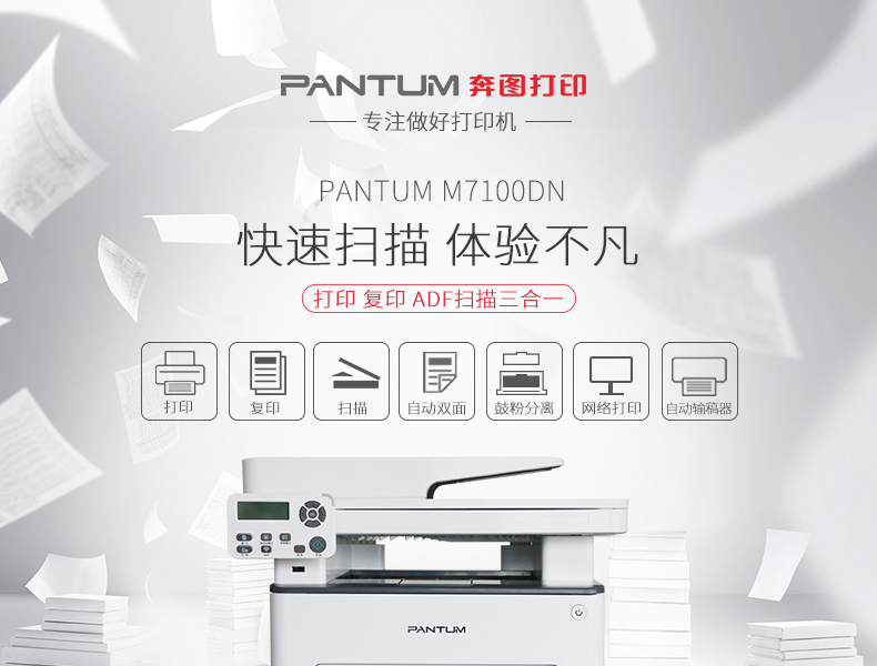 奔图(PANTUM)M7100DN 多功能一体机 A4黑白激光打印机 多功能一体机 家庭办公高速打印