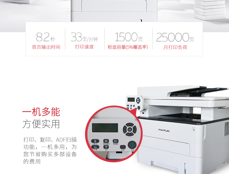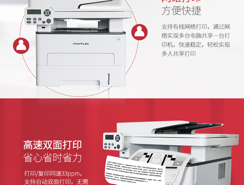 >奔图(PANTUM)M7100DN 多功能一体机 A4黑白激光打印机 多功能一体机 家庭办公高速打印