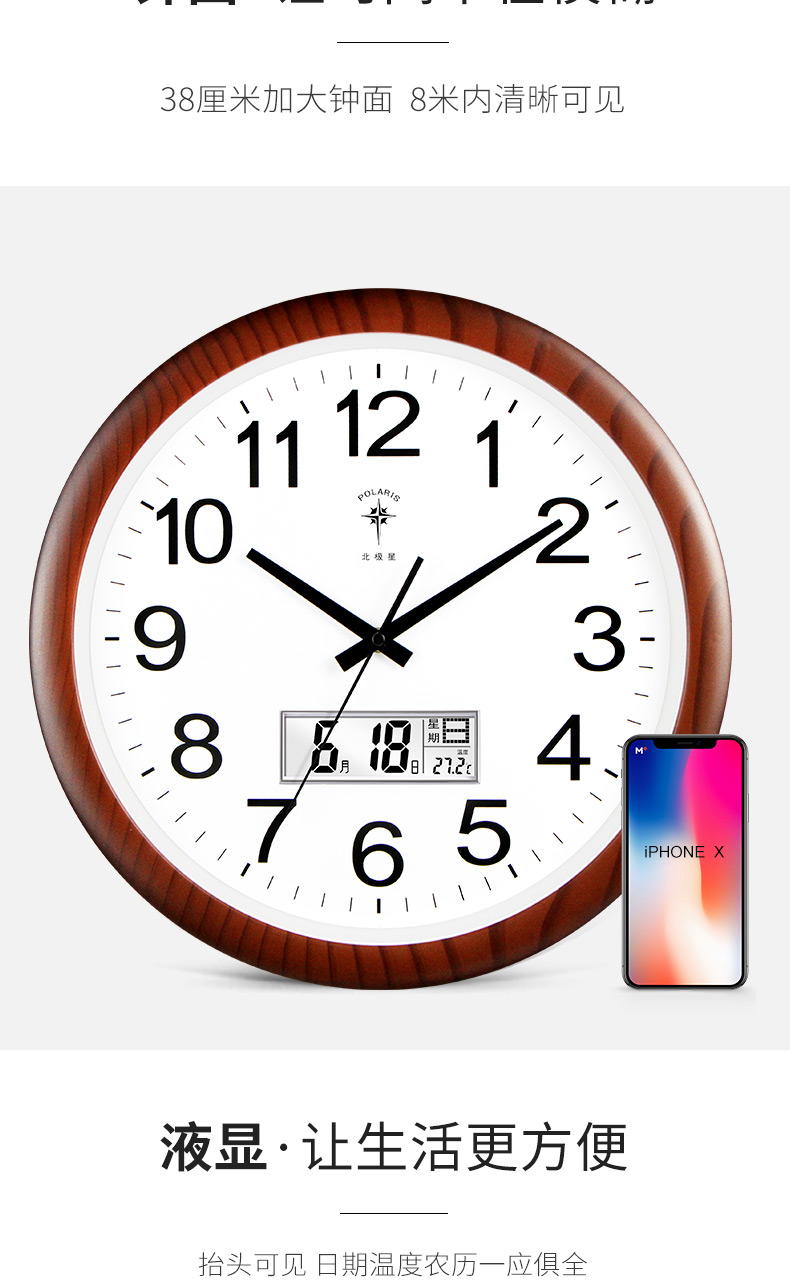 北极星 xz-012 日常生活类电器 挂钟客厅家用时尚大气日本精工机芯新中式卧室静音石英时钟