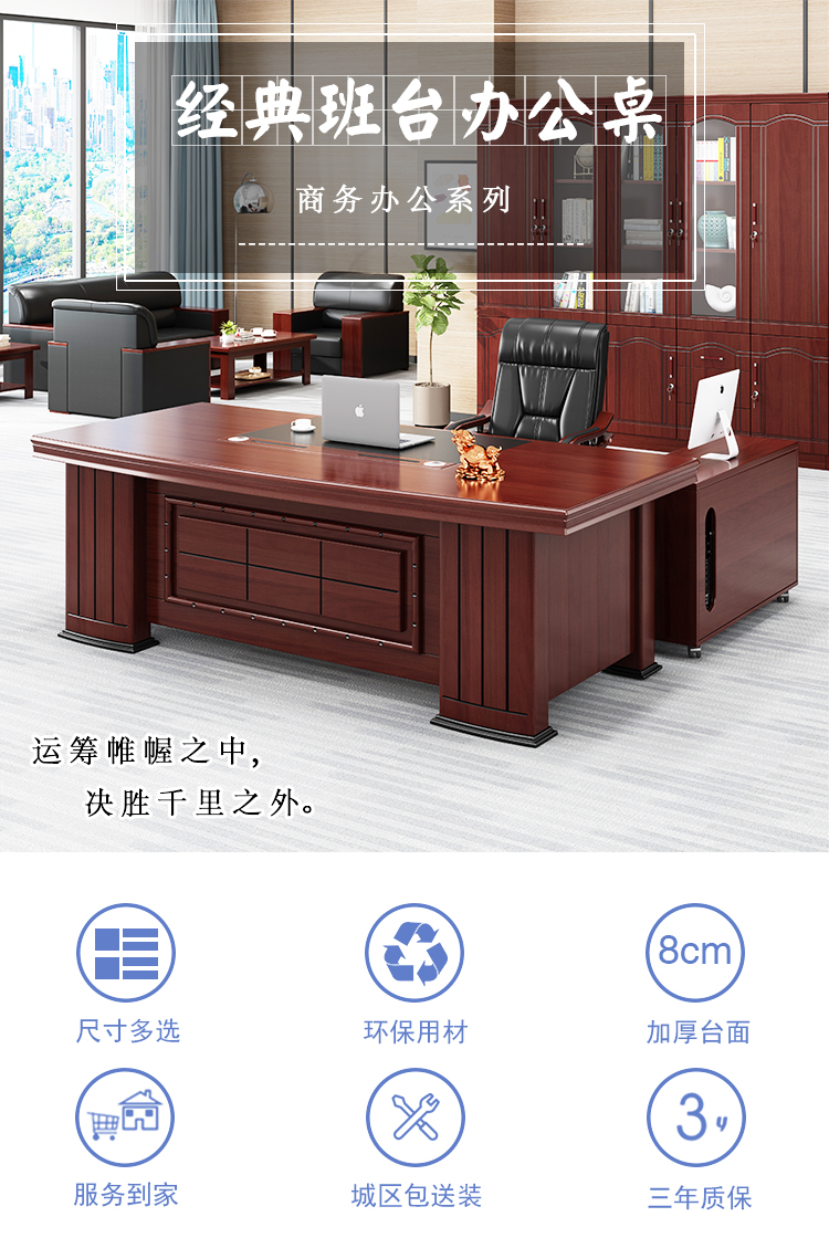 >好莱运 3Y221 木制台、桌类 老板桌办公桌大班台主管桌总裁桌中式实木贴面油漆经理桌 含边柜小柜 2200*1080*780