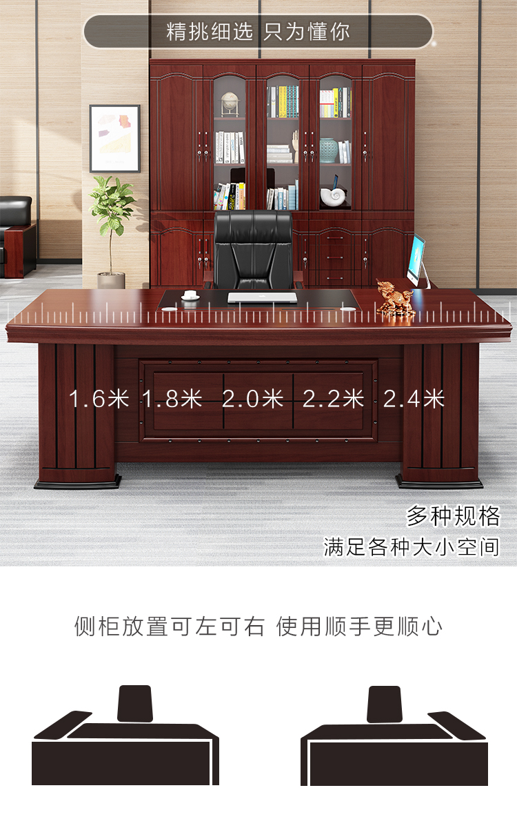 好莱运 3Y221 木制台、桌类 老板桌办公桌大班台主管桌总裁桌中式实木贴面油漆经理桌 含边柜小柜 2200*1080*780