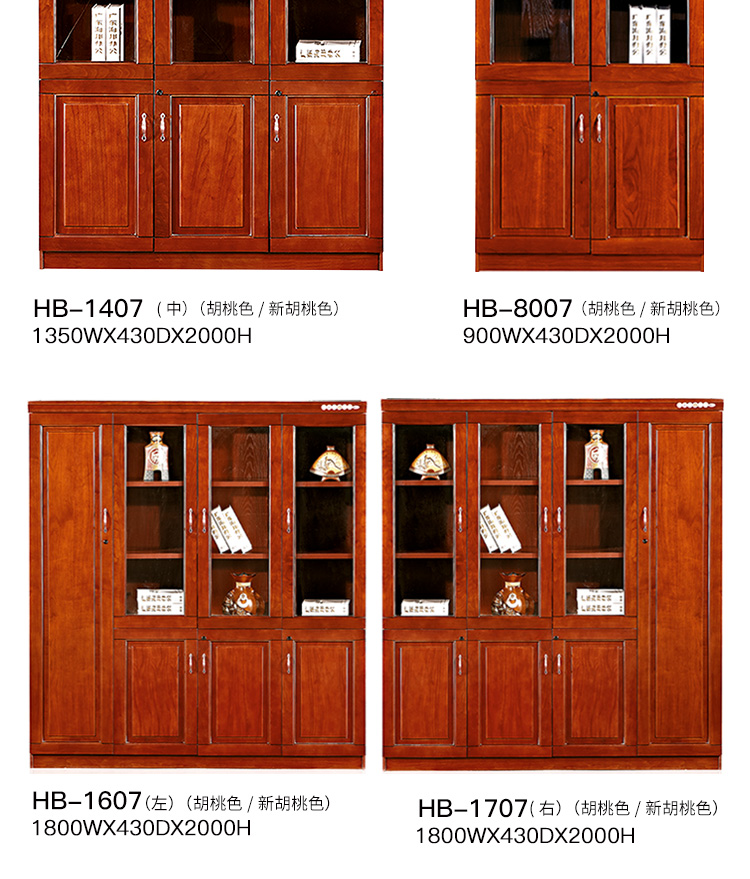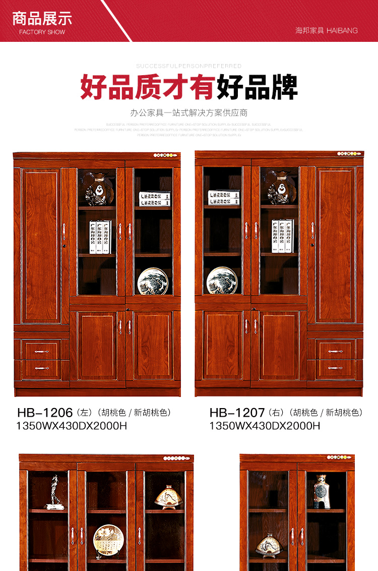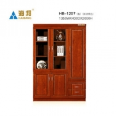 >海邦 1207 木质柜类 文件柜资料档案柜办公室文件柜带锁柜子板式书架带玻璃门储物柜 长1350*宽400*高2000 新胡桃色