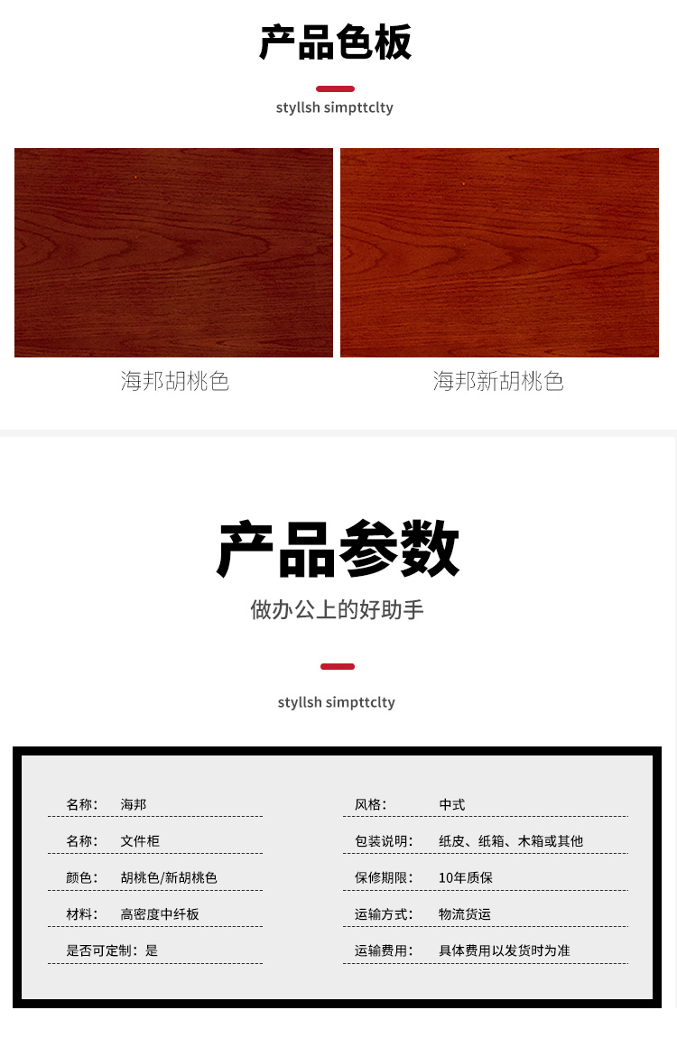 海邦 1207 木质柜类 文件柜资料档案柜办公室文件柜带锁柜子板式书架带玻璃门储物柜 长1350*宽400*高2000 新胡桃色