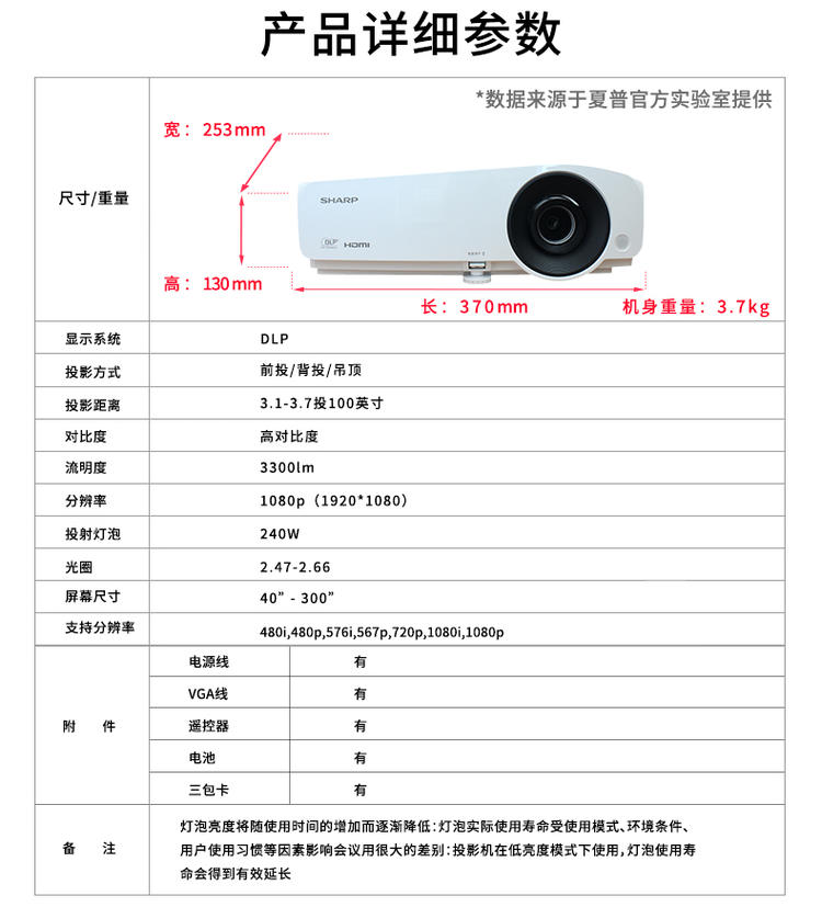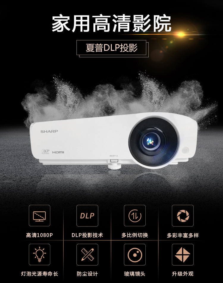 >夏普SHARP XG-H280TA 投影仪 1080P高清DLP商务家用夏普家庭影院投影机