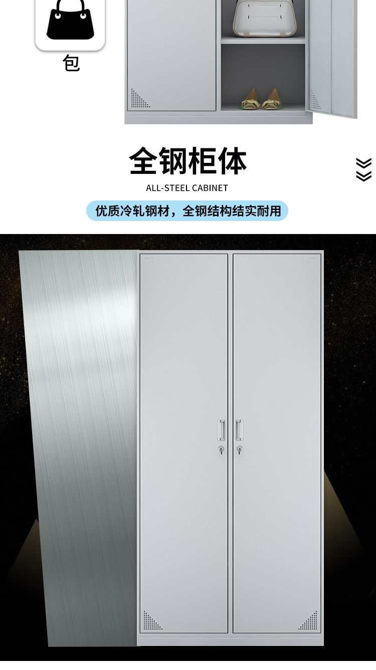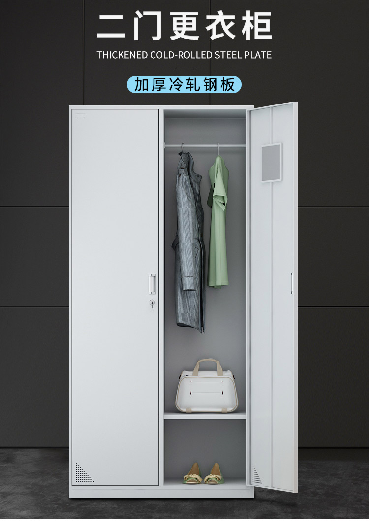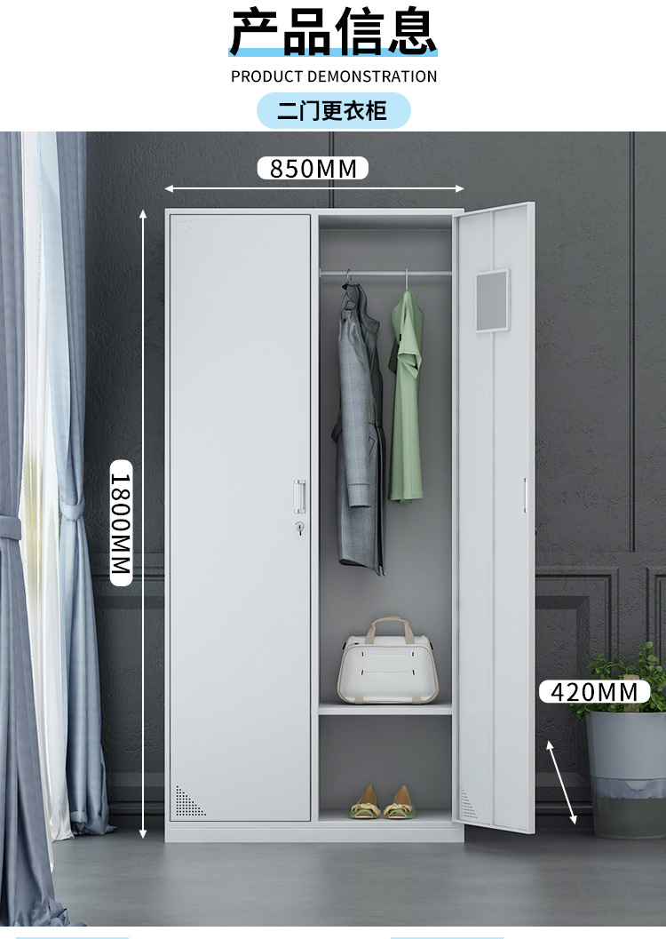 >龙宝 LB-0011 金属质柜类 钢制二门更衣柜浴室带锁储存物柜寄存工厂员工换衣柜铁皮2门衣柜长850*宽420*高1800