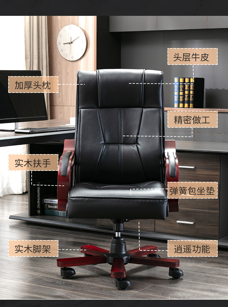 >海邦 hb-065木骨架为主的椅凳类 实木真皮总裁老板办公椅电脑长530*宽530*高1140