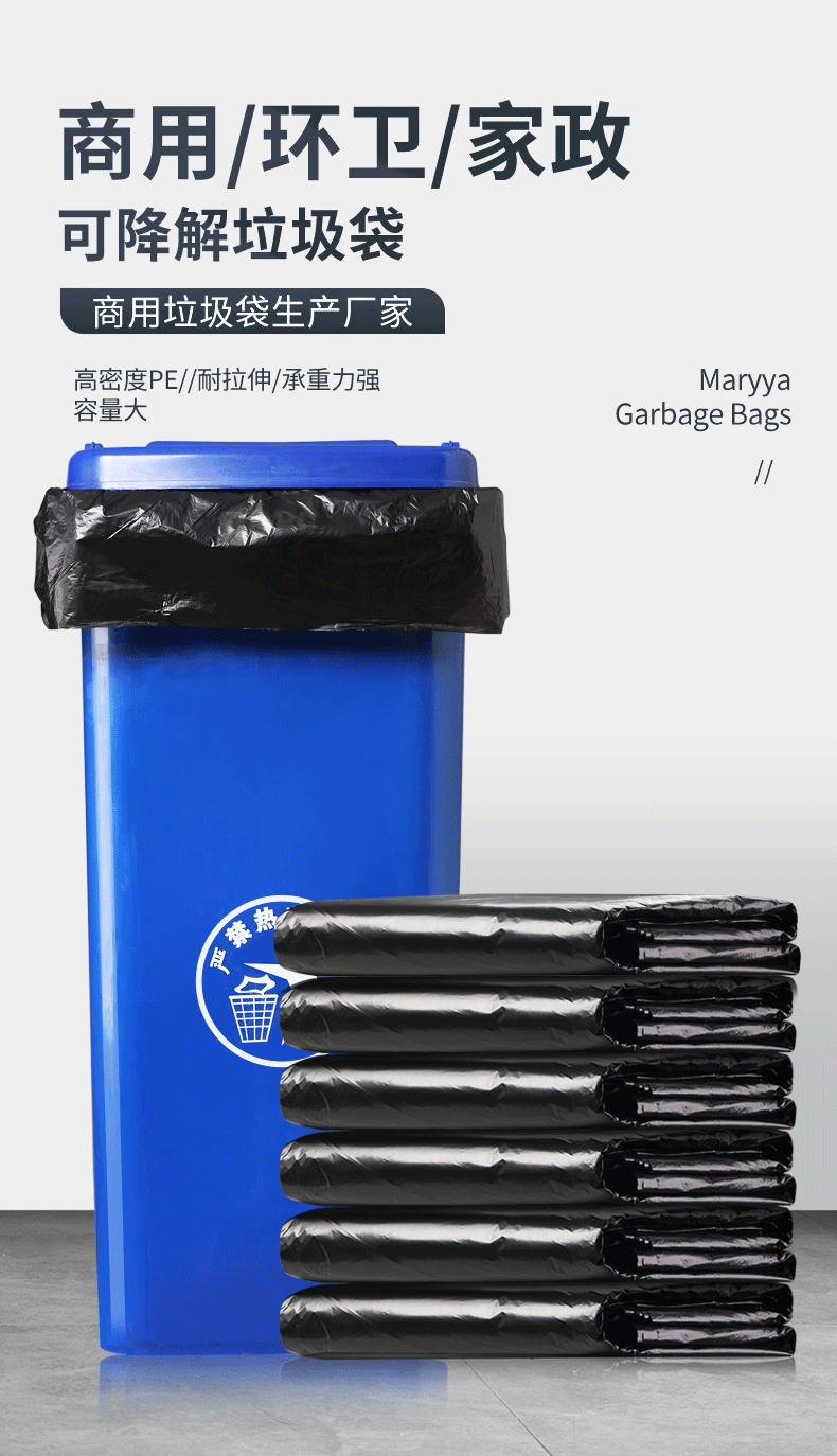>美丽雅 HC-084346 清洁工具 可降解垃圾袋大容量加厚强韧平口商业酒店垃圾袋 80*100cm*50只装