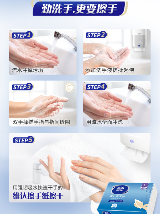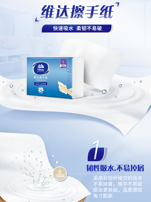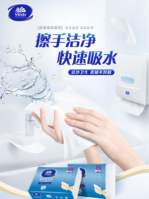 维达(Vinda) VS2290 卫生间专用擦手纸 抽纸 200抽*20包擦手纸 L码大尺寸 酒店厨房餐厅卫生间可用纸巾208mm*226mm 整箱销售