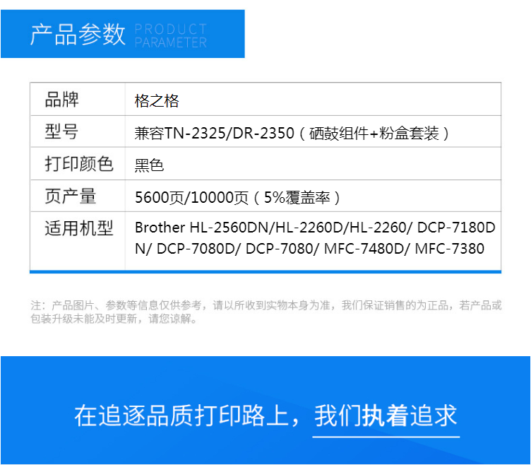 格之格 通用硒鼓、粉盒 2325 适用兄弟7180dn 7080d 2260D 7380 7480d tn2325 dr2350打印机