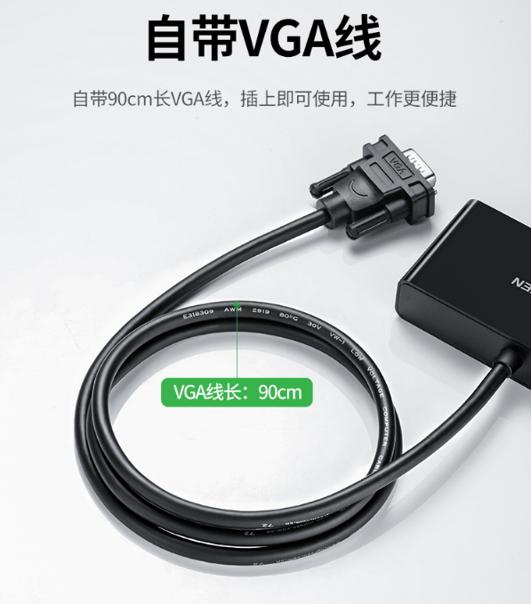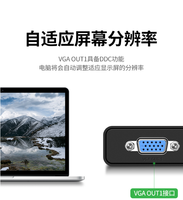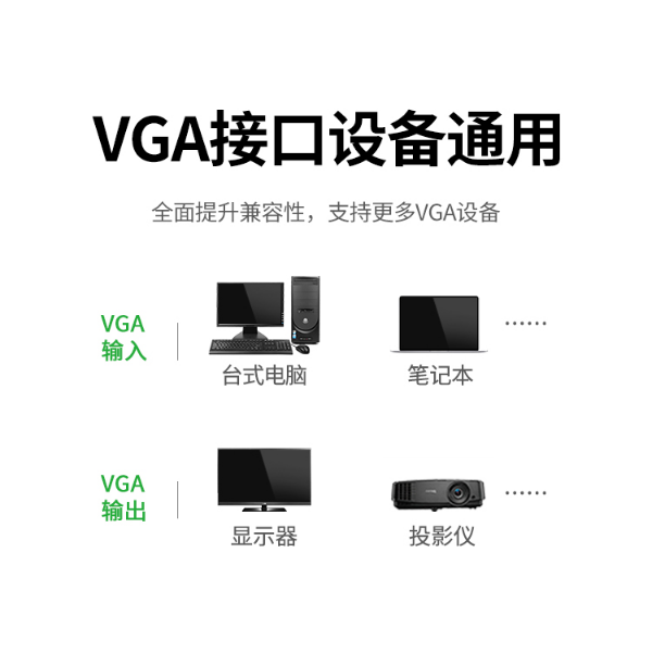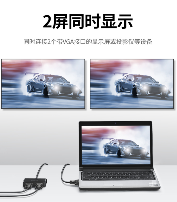 >绿联(UGREEN)数据线类 40254 VGA分配器一分二 笔记本电脑显示器分屏器 高清视频转换器一进二出同屏器 1分2分频器