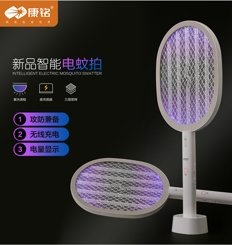 >康铭 日常生活类电器 KM-3852 电蚊拍充电式家用超强苍蝇拍灭蚊子拍锂电池两用灭蚊灯二合一