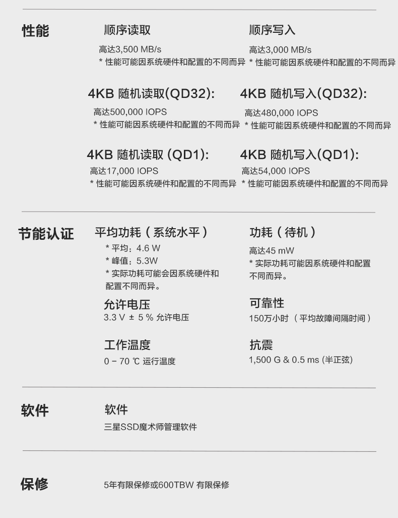 >三星SSD 980 U盘存储类配件 固态硬盘1TB NVMe M.2笔记本台式机电脑存储PCIe3.0