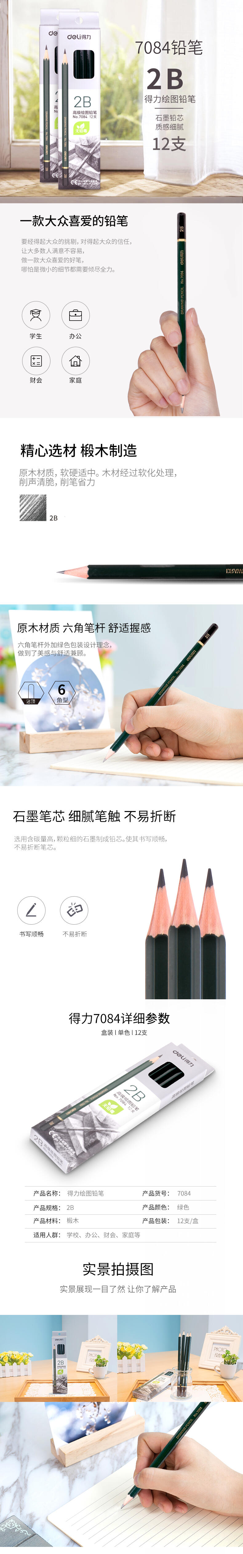>得力(deli) 书写用笔类用具 7084 素描绘图铅笔六角学生铅笔 考试专用填涂答题卡铅笔 12支/盒 2B