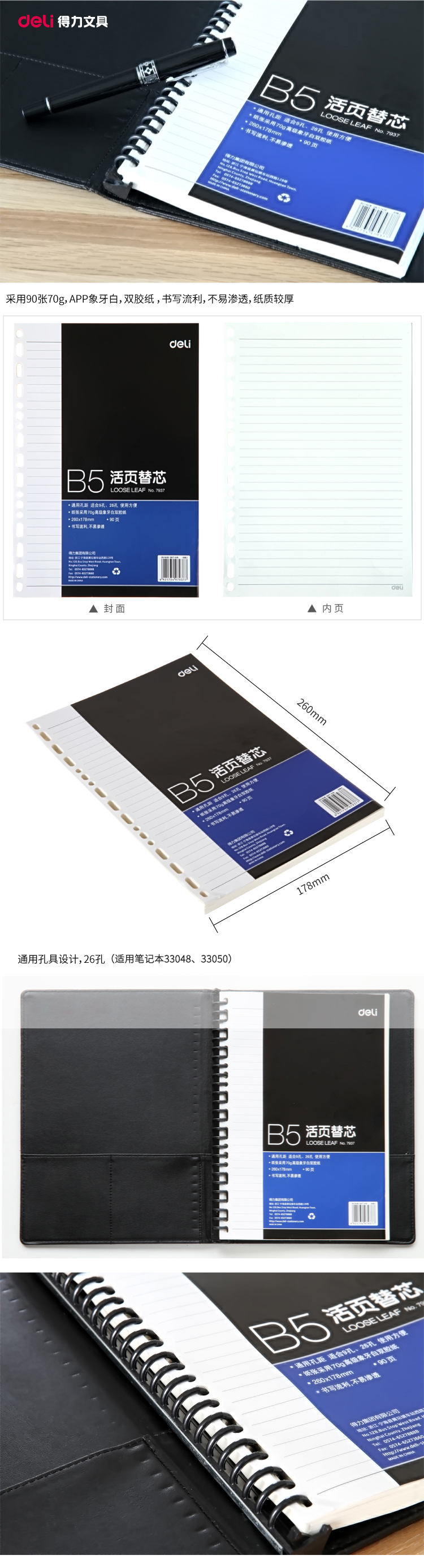 >得力(DL)薄本册 7937 象牙白活页替芯办公笔记本